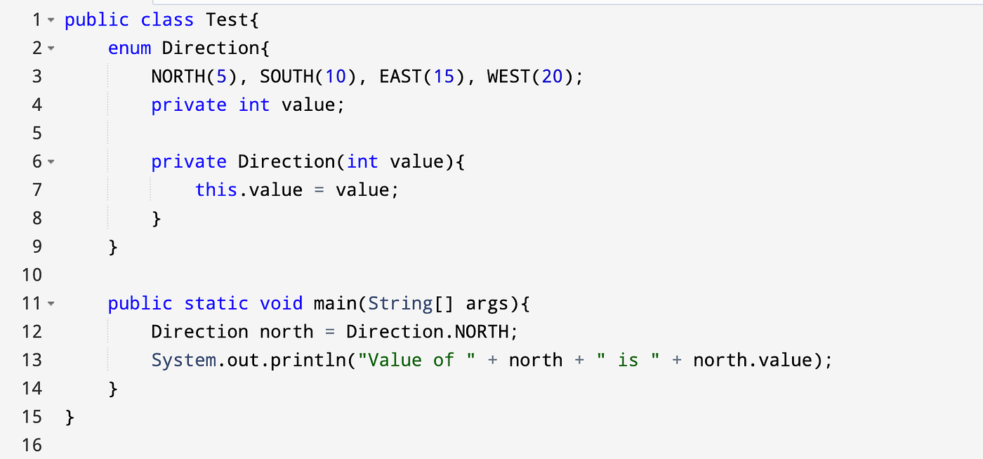 But then the fields should be of that class and not int. Enums can be thought of as classes that have fixed set. Before Java 15 we used public static final keywords to.